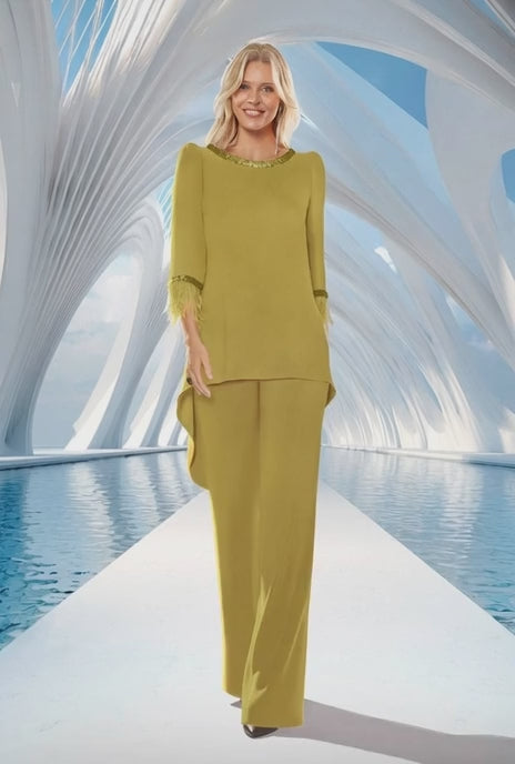 Conjunto dos piezas de corte recto con lentejuelas y plumas